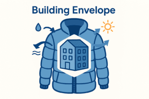 The envelope is the barrier that manages air, moisture, heat, light, and sound between inside and outside. When it performs well: